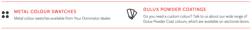 Available in a wide range of styles and colours, you’ll enjoy advantages like its smooth, quiet action along with Dominator’s commitment to quality and providing you with a Home Safe Home and reliable operation for years to come. Dominator Sectional Doors are custom manufactured in New Zealand to your specific opening dimensions.
