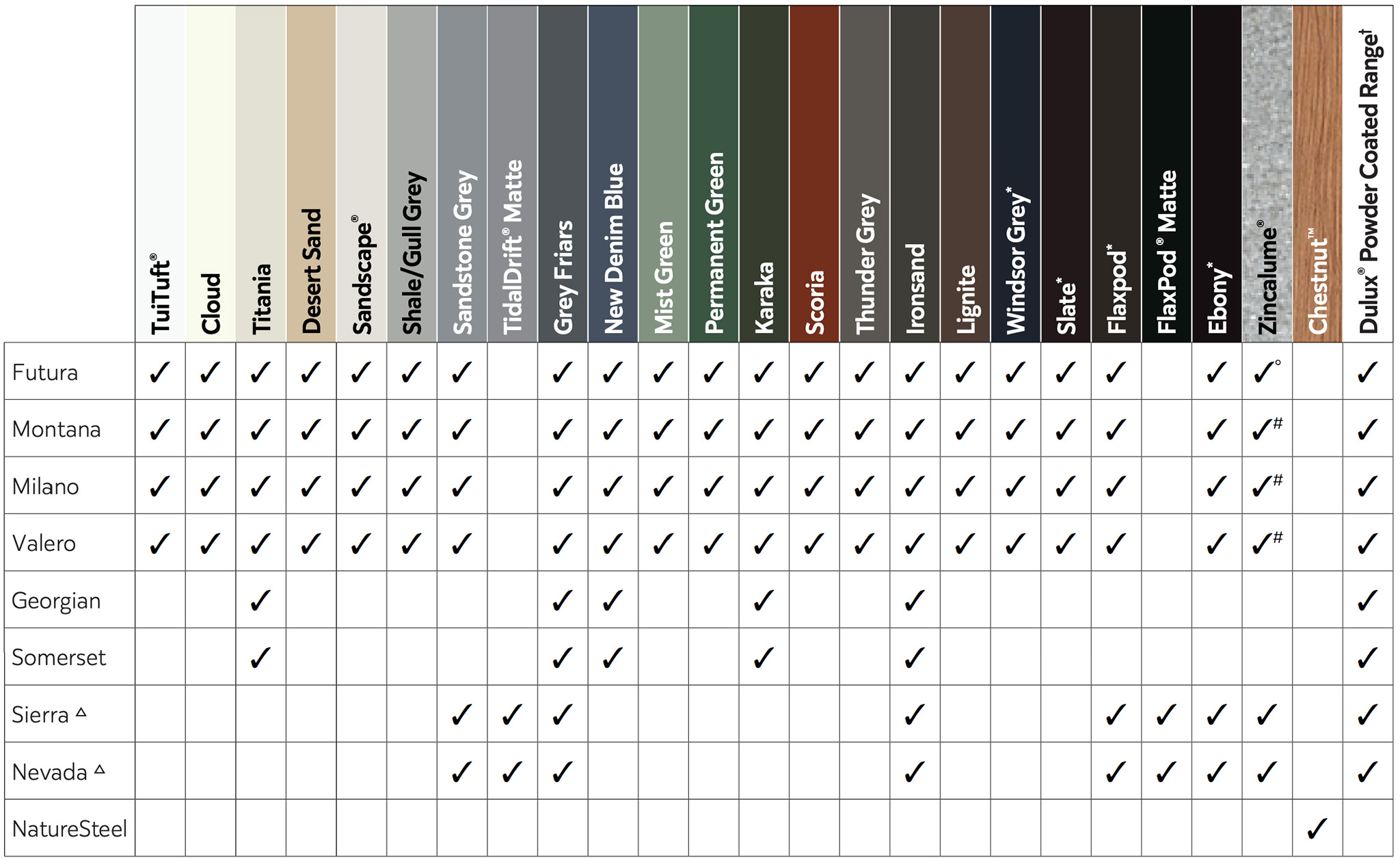 There are two finish options available. The distinctive textured finish offers the look and feel of timber with all the advantages of high grade Zinc-based steel, while the smooth finish option gives a clean, elegant line.